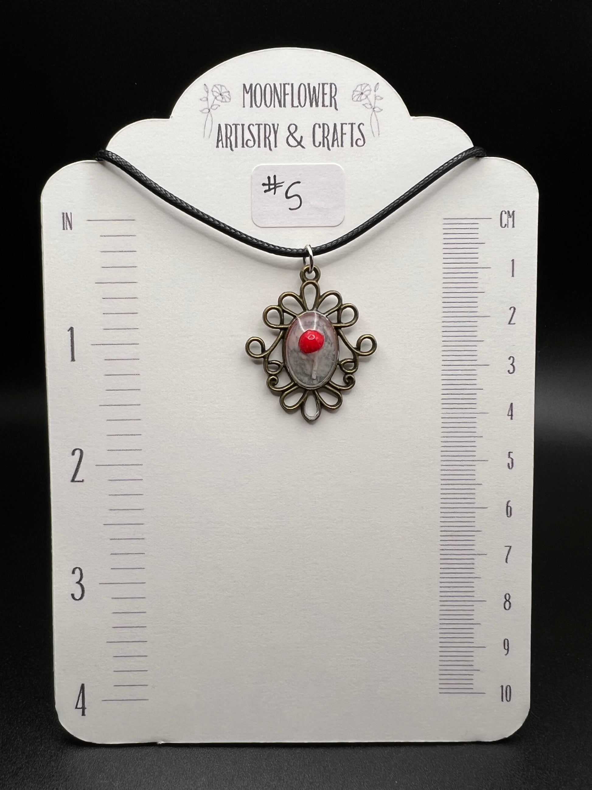 These Medium Framed Mushroom necklaces blend cottagecore charm with expert craftsmanship, featuring delicate mushroom designs that evoke a whimsical natural aesthetic. The lightweight frames showcase vibrant purple hues, creating a standout accessory for any nature lover. Finished with sterling silver earring hooks, they perfect for everyday wear or special occasions. Embrace a subtle yet striking botanical statement with these thoughtfully designed earrings.