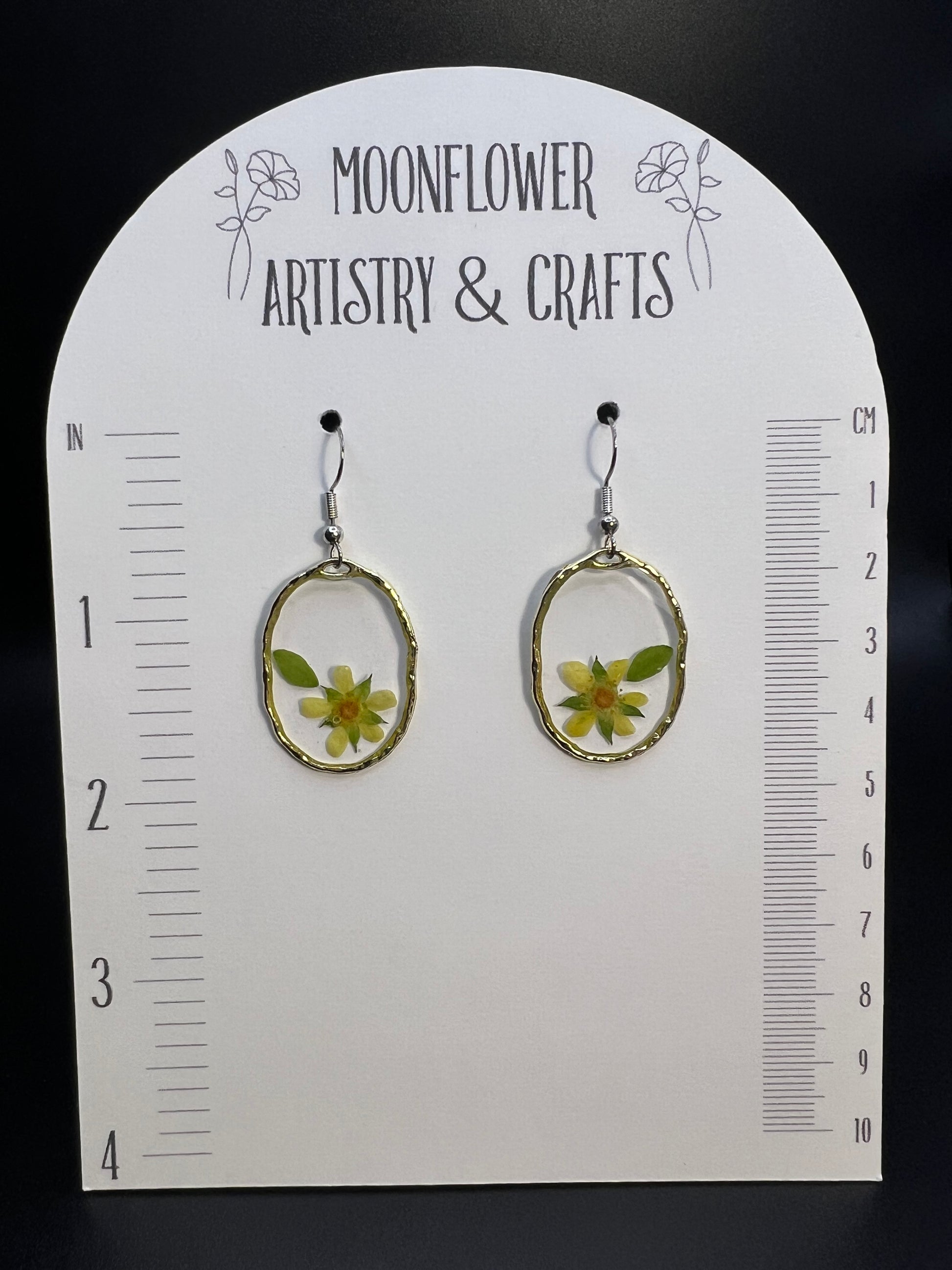 These pressed flower and resin earrings are expertly handcrafted to capture nature’s delicate beauty in a wearable form. Each pair features unique, genuine pressed flowers from sealed in resin, ensuring lasting vibrancy and a lightweight feel. Finished with sterling silver earring hooks, their distinctive design adds a subtle, elegant touch to any outfit, making them perfect for those who appreciate artisan craftsmanship and natural detail.